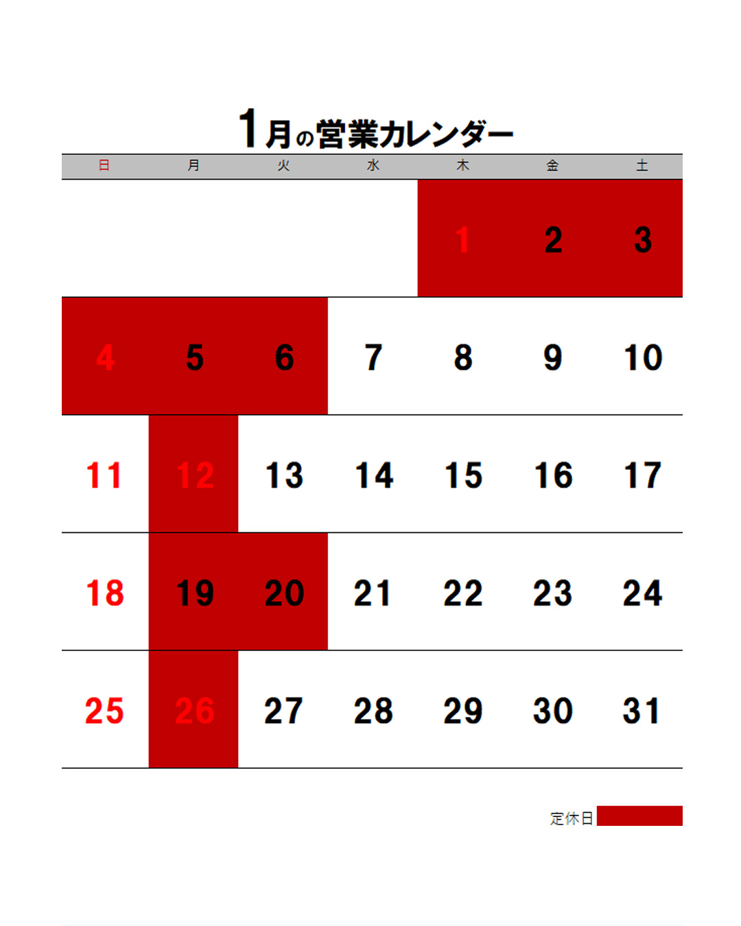 日頃は、フィアット/アバルト浜松をご愛顧いただき誠にありがとうございます。12月・1月の営業日については以下とさせていただきます。