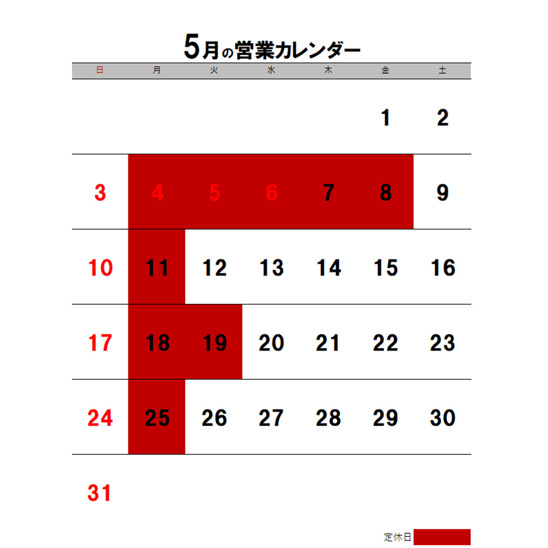 4月・5月の営業カレンダーについて